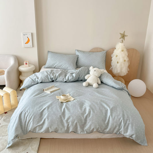 40s Pure Cotton Fitted Sheet 3 in 1 Bedding Sets Blue