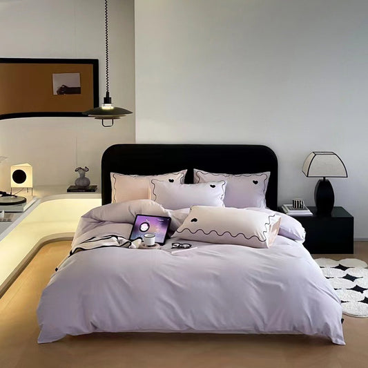 Water-washed Cotton Embroidered 4 in 1 Bedding Sets Bowknot Plaid Bear