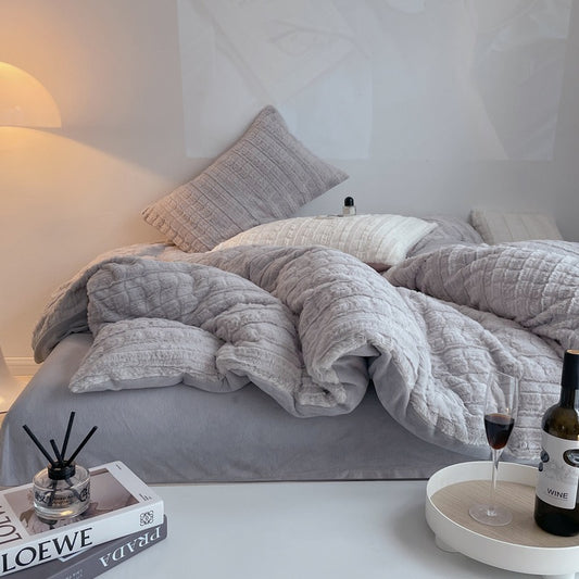 High GSM Faux Rabbit Fur Fitted Sheet Set in 4 Grey