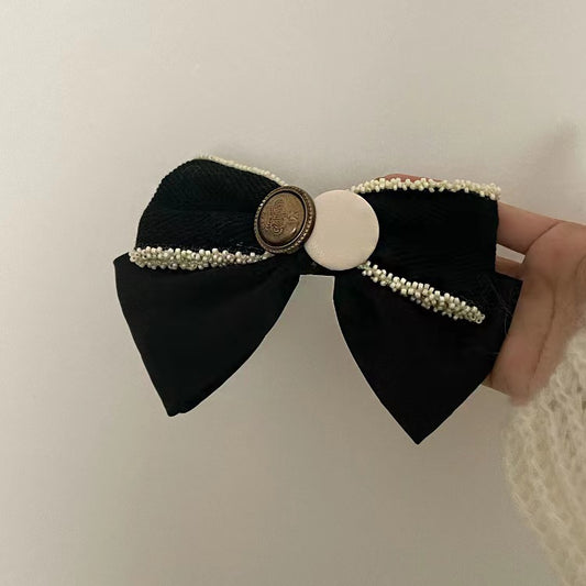 Pearl Button Bow Hair Tie