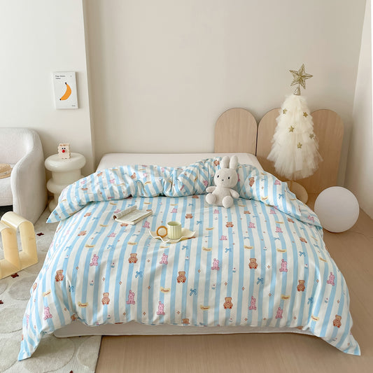 40S Pure Cotton Reversible Quilt Cover Striped Teddy Bear