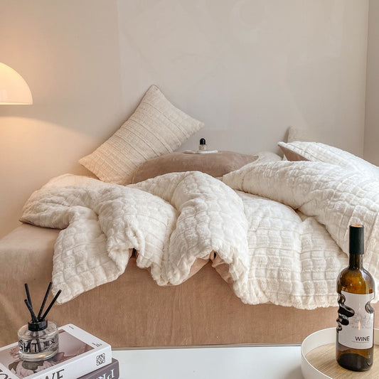 High GSM Faux Rabbit Fur Fitted Sheet Set in 4 White