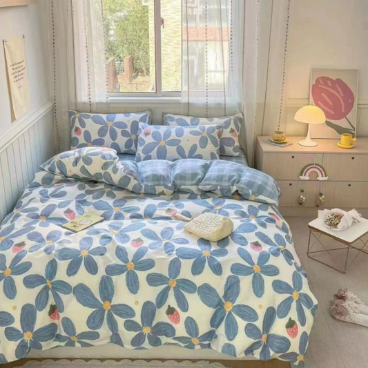 40S Pure Cotton Reversible Blue Bloom Sanctuary- 4 in 1 Bedding Sets