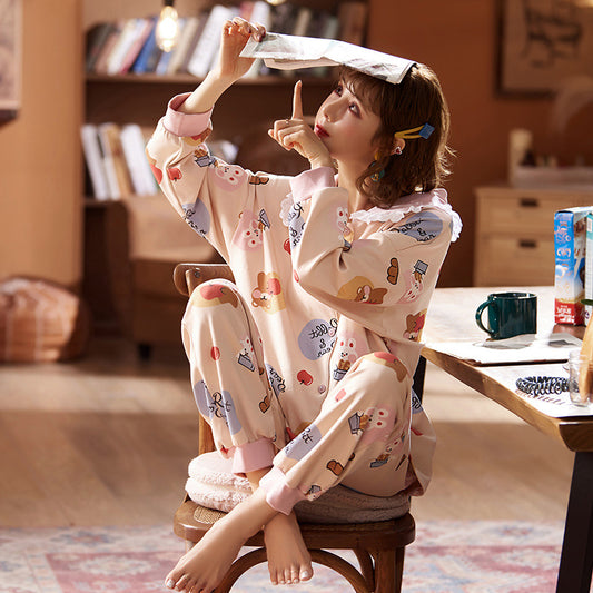 Spring And Autumn Couple Style Simple Solid Color Home Clothes