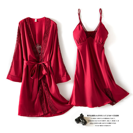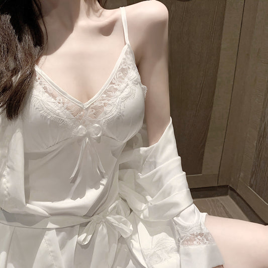 Five-Piece Lace Home Pajamas Set With Chest Pad