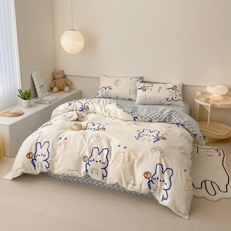 40S Pure Cotton Reversible 3 in 1 Bedding Sets Blue Line Rabbit