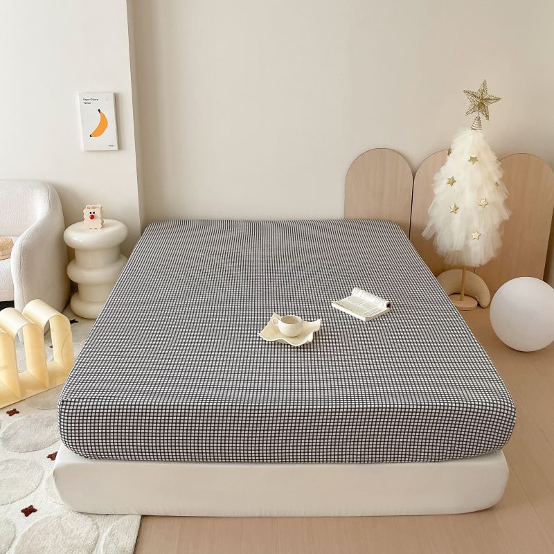 40s Pure Cotton Fitted Sheet Little Black Plaid