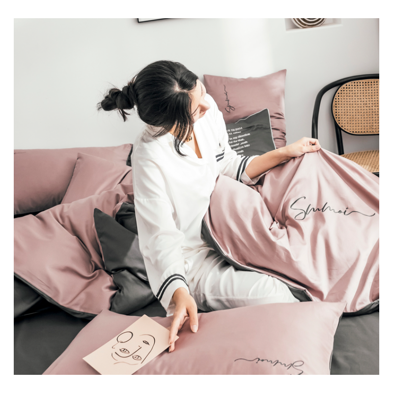 60S Long Staple Cotton Quilt Cover With Broidery-Pink